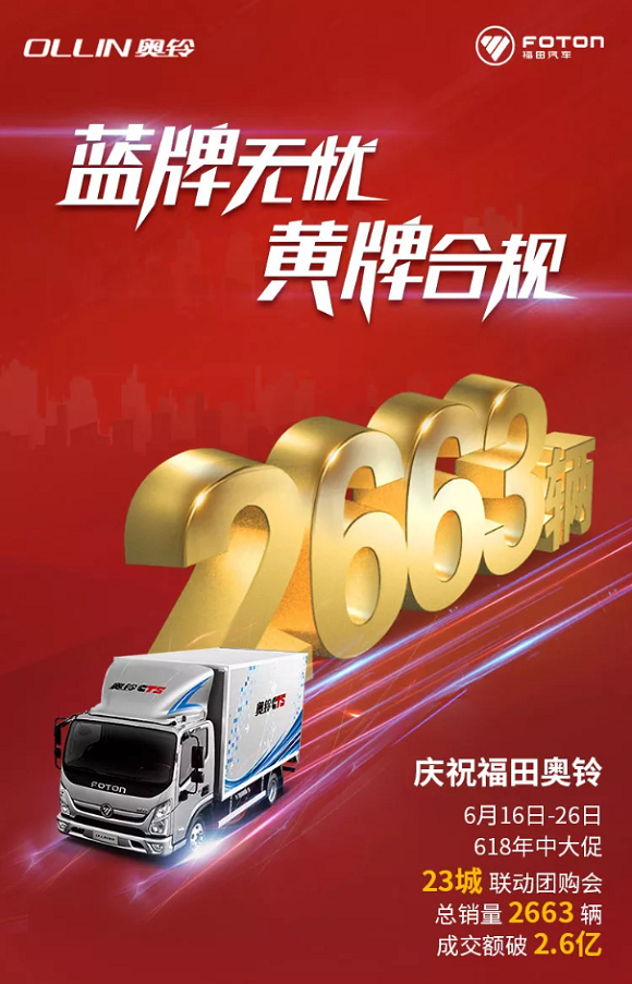 成交额突破2.6亿!福田奥铃618大促累计成交2663辆