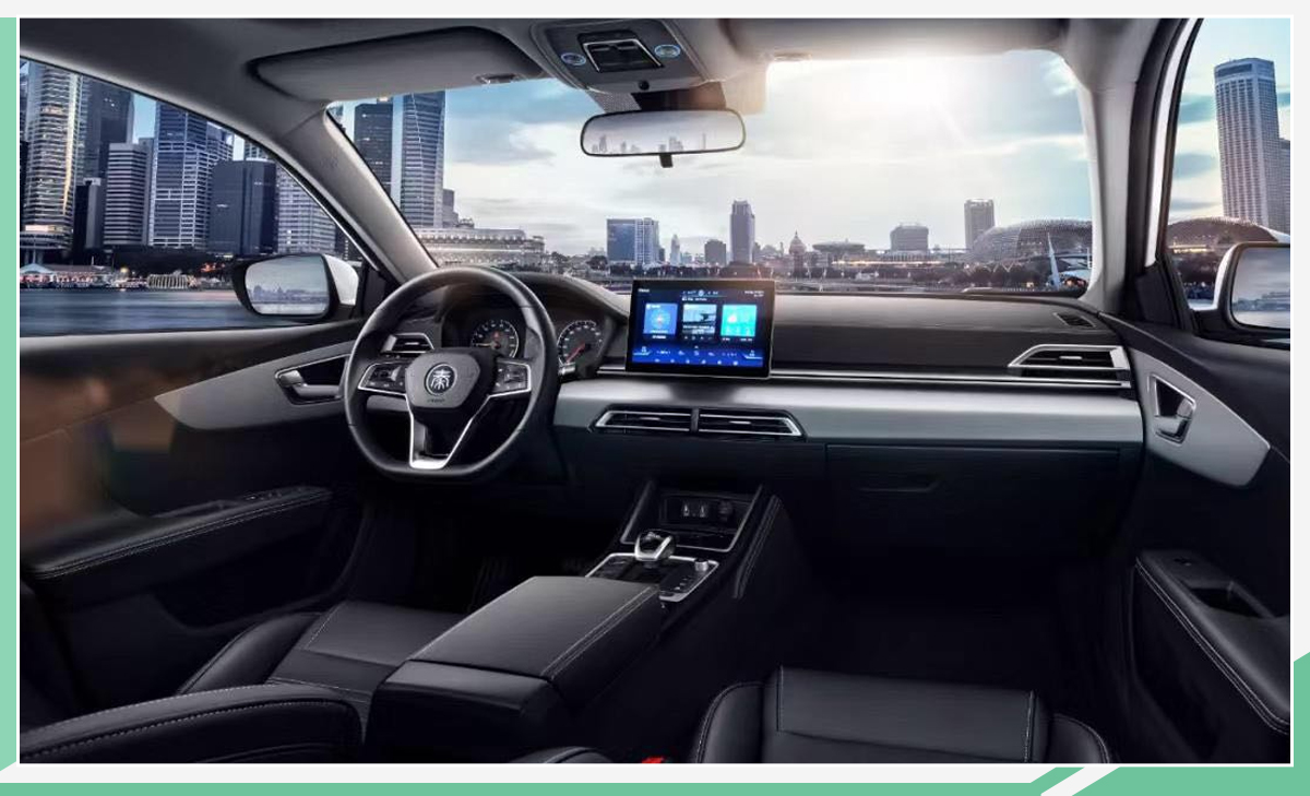 新车内饰整体以黑色调为主,三辐式平底方向盘造型运动,且采用皮质包裹。中央悬浮式大尺寸显示屏颇为醒目,可实现横向与竖向旋转切换,并将搭载DiLink智能网联系统。电子挡杆两侧及后方设有少量实体按键,提升操作便利性。