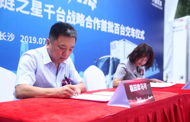 【欧马可事业部营销公司大客户副总经理盛革先生与湖南兴盛优选货享通管理中心总经理雷鸣女士签署千台冷链之星战略合作】
