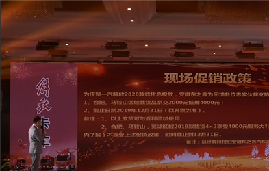 在详细了解一汽解放2020款载货车的同时,安徽东之鑫汽车汽车销售服务有限公司也公布了大力度的促销政策,点燃了现场火爆的订车场面。