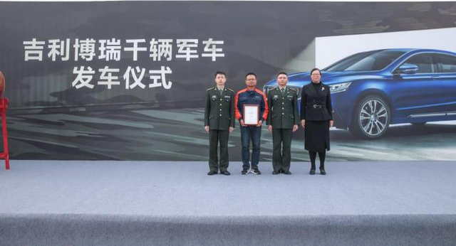 2019年12月30日,吉利博瑞千辆军车发车仪式在宁波春晓基地隆重举行。一辆辆吉利博瑞军车在部队代表、吉利汽车国内销售公司和春晓基地相关负责人、员工代表的共同见证下,在出征的擂鼓声中缓缓驶出,正式开启 "入伍"之旅。吉利博瑞此次"入伍",不仅将为部队单位提供更高品质出行服务,也是吉利汽车以实际行动为推进军民融合深度发展国家战略,展示中国汽车企业积极回报社会、乐于承担社会责任的担当精神,起到了引领和示范作用。