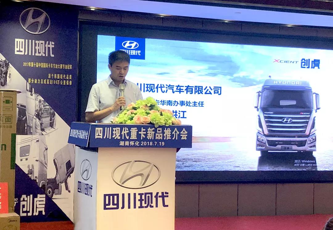 2018年7月19日,“干线物流新主力”全新创虎2018款湖南区域推介会在湖南怀化盛大举行。四川现代汽车有限公司重卡华南办事处主任李洪江,怀化宏创汽车销售服务有限公司董事长满意辉携手出席,与当地近百位物流公司代表、意向客户代表一起,共同见证了全新创虎2018款重卡的卓越品质和非凡魅力。
