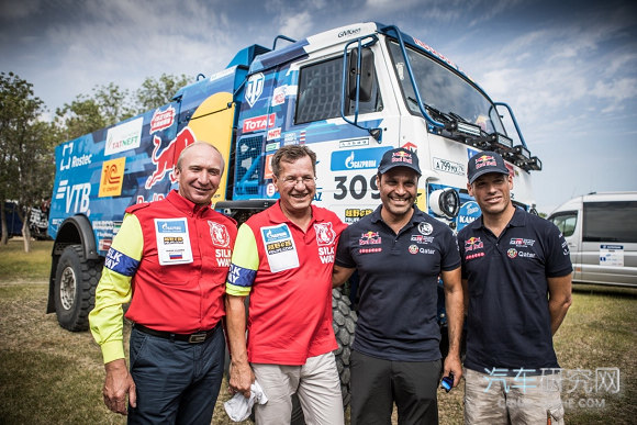 (左一为卡玛兹大师车队总负责人,传奇车手弗拉基米尔·恰金先生)