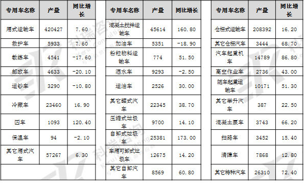 1.专用车产量同比实现18%以上的增长
