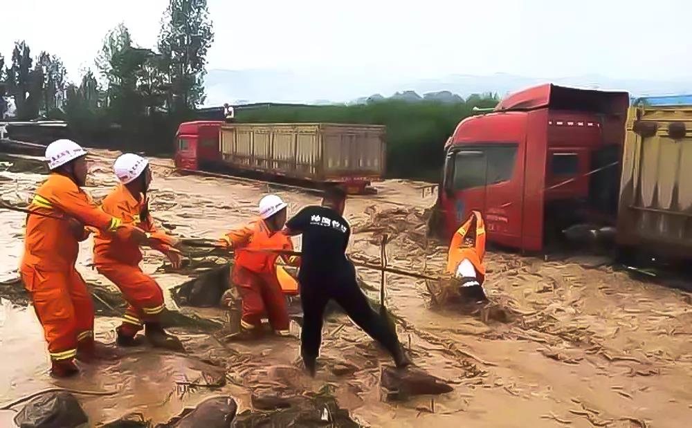 突如其来的洪水冲击卡车,司机师傅面临着危险。洪水水位不断攀升,当地消防官兵、社会救援队赶赴现场,展开紧急救援。在接到用户的求救信息后,潍柴河南洛阳心同服务站第一时间也加入救援队伍。