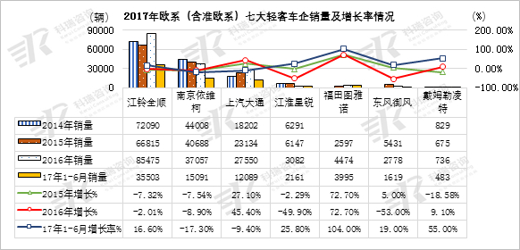 2017年,七大欧系轻客(含准欧系)除南汽依维柯和上汽大通纯欧系轻客市场销量下降外,其他五家都实现了2位数或3位数的正增长率。尤其是上汽大通V80轻客在连续实现五年多的快速高速增长率后,今年终于回归到了理性的市场发展阶段,正增长率与负增长率必然成为一种常态,无需对此杞人忧天,何况上汽大通有极其强大的营销水平能力。