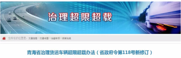 近期,青海省交通运输厅公布了最新修订的《青海省治理货运车辆超载超限办法》。