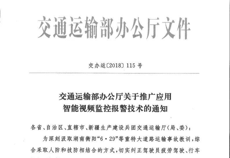 为深刻汲取湖南衡阳“6●29”等重特大道路运输事故教训,综合采取人防和技防相结合的方式,切实纠正驾驶员疲劳驾驶、行车接打手机等安全隐患,有效遇制和减少重特大事故的发生,按照党中央、国务院有关安全生产工作部署,经交通运输部同意,决定在道路客货运输领域推广应用智能视频监控报警技术,全面提升道路运输安全科技保障水平。