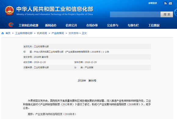 根据工信部的说法,《目录》是为深入推进产业有序转移和转型升级,以达到各区域工业的高质量和协调发展,该文件具有指导性和方向性,优先发展调整的产业未来国家会在政策上予以支持。