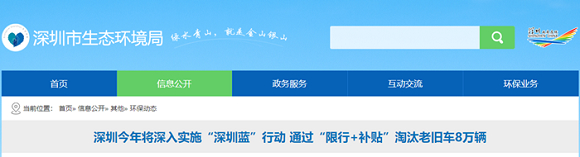 近日,深圳市生态环境局发布公告称,今年将深入实施“深圳蓝”行动,通过“限行+补贴”淘汰老旧车8万辆!