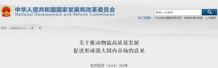 关于推动物流高质量发展促进形成强大国内市场的意见