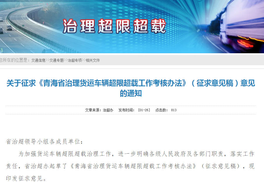 青海省还不断拓展“互联网+治超”和技术监控执法,优化治超网络布局,充分利用已建成信息化网络和设施,开展技术监控执法。