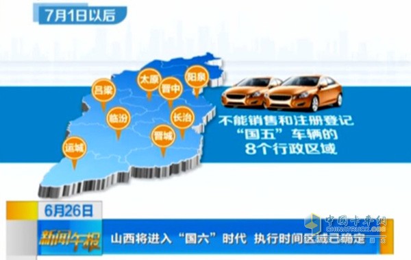 2019年7月1日之后不能办理销售和注册登记“国五”车辆的8个重点行政区域已确定,分别是:太原、阳泉、晋中、长治、吕梁、临汾、晋城和运城。