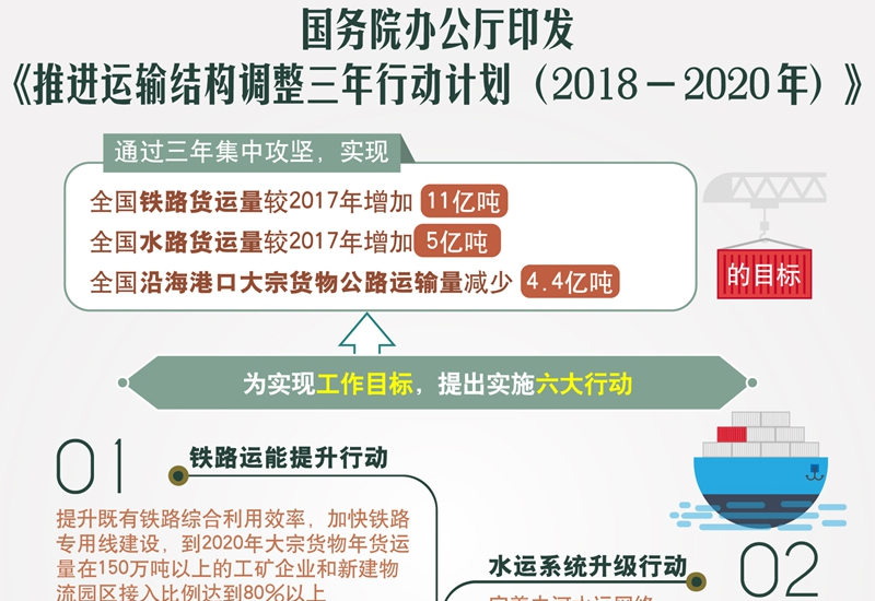 国务院下发《关于印发推进运输结构调整三年行动计划(2018—2020年)的通知》。通知发布的行动计化对货车运输主要影响以下几点:1.高速平均违法超限超载率不超过0.5%;2.沿海港口大宗货物公路运输量减少4.4亿吨,重点涉及区域:京津冀及周边+长三角+汾渭平原;3. 2020年底将淘 [详细]