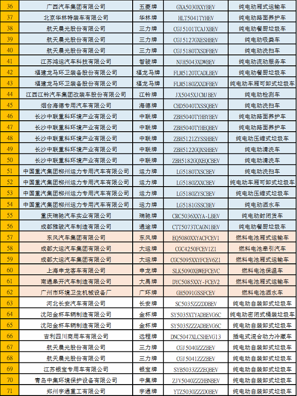 在71款新能源专用车中,有6款燃料电池专用车,大运上榜2款,东风、申龙、皋开和广环各上榜1款。