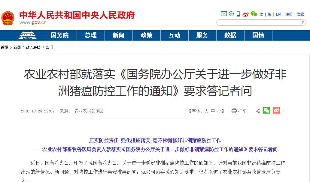 近日,国务院办公厅印发了《国务院办公厅关于进一步做好非洲猪瘟防控工作的通知》,《通知》从6个方面工作对非洲猪瘟防控工作提出了进一步明确要求。其中一个方面就是鼓励畜禽产品冷链运输、冷鲜上市,运输生猪等活畜禽的车辆不再享受鲜活农产品运输“绿色通道”政策。
