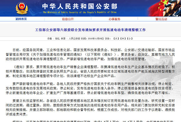 日前,经国务院同意,工业和信息化部、国家发展和改革委员会、科技部、公安部、交通运输部、国家市场监督管理总局印发《关于加强低速电动车管理的通知》(以下简称《通知》),要求各省、自治区、直辖市地方人民政府组织开展低速电动车清理整顿工作,严禁新增低速电动车产能,加强低速电动车规范管理。