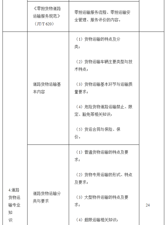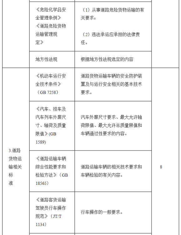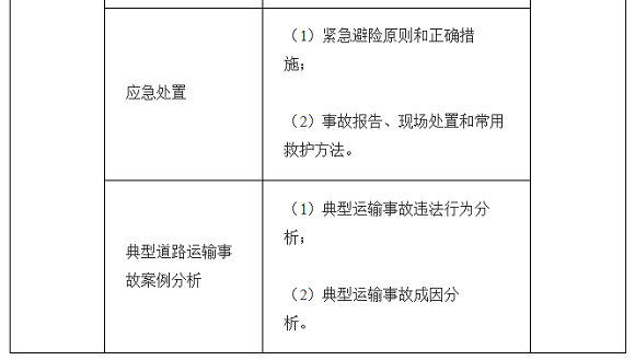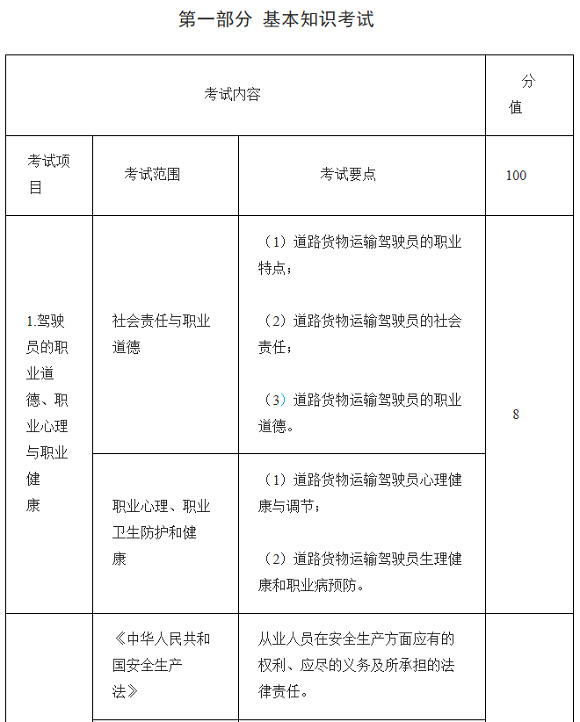 具体考试内容及评分标准的原文,可参阅:《交通运输部办公厅关于发布中华人民共和国道路货物运输驾驶员从业资格考试大纲的通知》