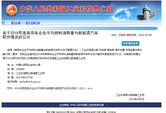 根据《积分办法》要求,2018年12月20日前,各乘用车企业应通过平台向工业和信息化部递交2019年度积分预报告。预报告的内容包括本企业平均燃料消耗量预期达标值、预期实际值和新能源汽车积分预期值等。