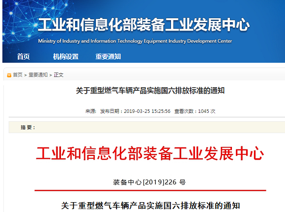 按照GB 17691-2018《重型柴油车污染物排放限值及测量方法(中国第六阶段)》要求,重型燃气车辆产品将于2019年7月1日执行国六a阶段排放要求,装备工业发展中心拟于6月开始清理审查工作。目前,《公告》内部分重型燃气车辆产品仍未符合标准要求,现将具体产品名单公示如下(见附件)。请相关企业尽快核对,并抓紧安排整改工作。