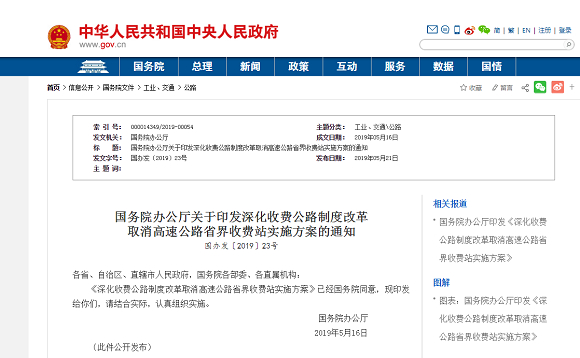 国务院正式发布取消高速公路省界收费站实施方案