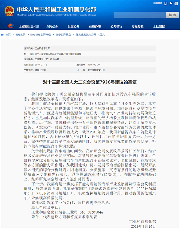 工信部答复制定禁售燃油车时间表建议 将设立燃油车禁行区试点