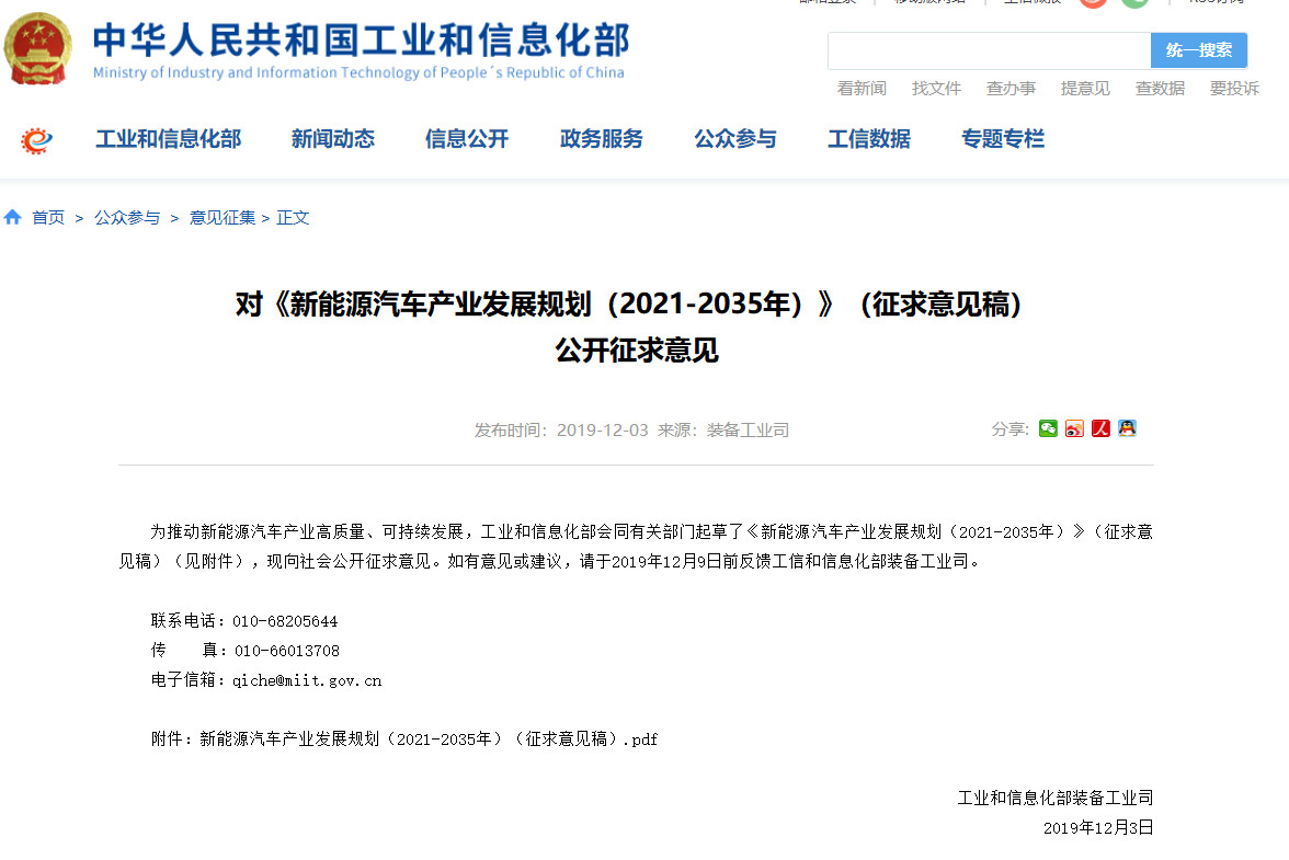 从今年年初开始,工信部和相关部门就一直积极推进的《新能源汽车产业发展规划(2021-2035年)》(征求意见稿)(以下简称《征求意见稿》)终于在今年最后一个月的月初发布,正式向社会公开征求意见。“今年年初,我们启动了新的新能源汽车产业发展规划(即《新能源汽车产业发展规划(2021-2035年)》),这一规划提前启动、提前运筹,规划期为2021年~2035年,接续此前发布的《节能与新能源汽车产业发展规划(2012-2020年)》。”工业和信息化部装备司副司长罗俊杰曾在接受记者采访时表示,《新能源汽车产业发展规划(2021-2035年)》旨在为行业发展明确方向、确定目标、指明路径、坚定信心。