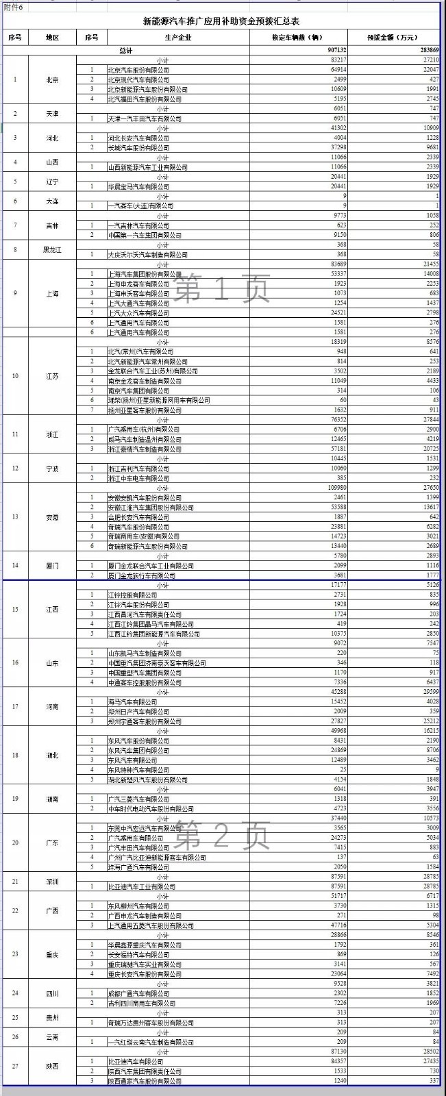 近日,财政部发布了《关于下达2020年节能减排补助资金预算的通知》,其中包含2015-2018年度各省市的新能源汽车推广应用购置补贴清算和新能源汽车推广应用补助预拨情况。