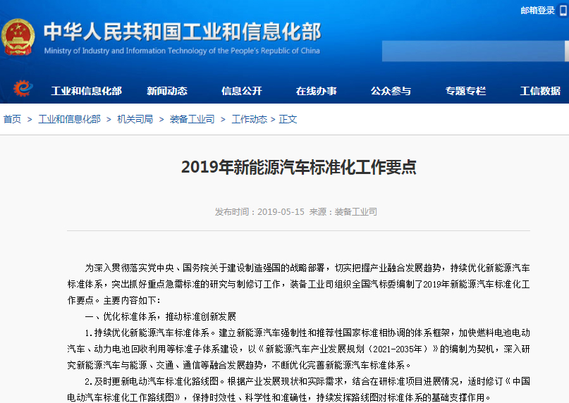 为深入贯彻落实党中央、国务院关于建设制造强国的战略部署,切实把握产业融合发展趋势,持续优化新能源汽车标准体系,突出抓好重点急需标准的研究与制修订工作,装备工业司组织全国汽标委编制了2019年新能源汽车标准化工作要点。 [详细]
