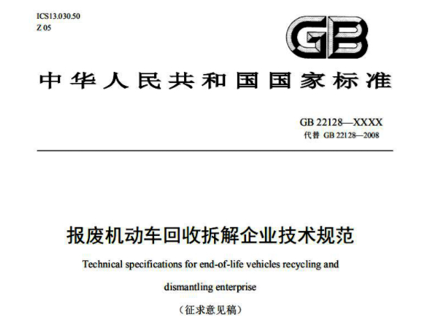 《报废机动车回收拆解企业技术规范》国家标准意见的通