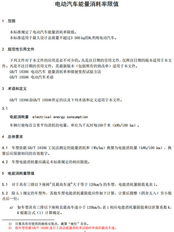 汽车推荐性国家标准《电动汽车能量消耗率限值》征求意