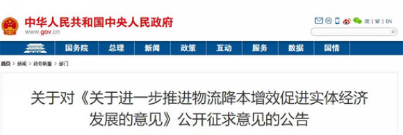 7月10日,国家发展改革委官方网站发布经济贸易司“关于对《关于进一步推进物流降本增效促进实体经济发展的意见》公开征求意见的公告”。“公告”指出,为进一步推进物流降本增效,促进实体经济健康发展,国家发展改革委会同有关部门研究起草了《关于进一步推进物流降本增效促进实体经济发展的意见》,现向社会公开征求意见