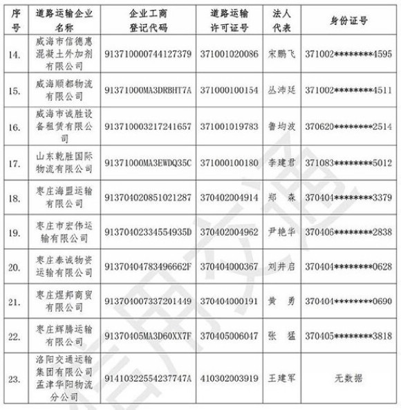 近日,依据国家发展改革委、中国人民银行、交通运输部等36个部门联合签署的《关于对严重违法失信超限超载运输车辆相关责任主体实施联合惩戒的合作备忘录》,交通运输部正式发布了2018年第一批严重违法超限超载失信当事人信息。