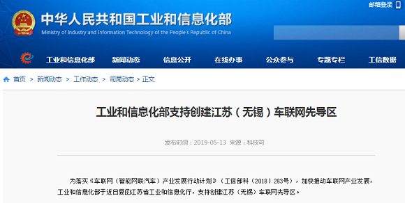 为落实《车联网(智能网联汽车)产业发展行动计划》(工信部科〔2018〕283号),加快推动车联网产业发展,工业和信息化部于近日复函江苏省工业和信息化厅,支持创建江苏(无锡)车联网先导区。工信部要求,江苏省工信厅应按照《车联网(智能网联汽车)产业发展行动计划》要求,围绕车 [详细]