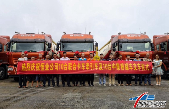 锋芒再露,广东湛江10辆联合卡车6*4牵引车交车仪式顺