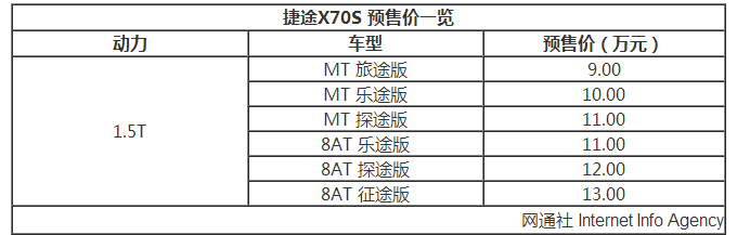 动力方面,捷途X70S搭载一台1.5T涡轮增压发动机,最大功率为108千瓦,峰值扭矩210牛米。传动系统方面,新车匹配5速手动或8速手自一体变速箱.