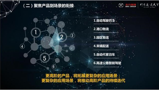 二示范为先,以场景前沿产品的应用和升级。结合2022年北京冬奥会、京雄高速、雄安新区和北京智慧城市需求,开展自动驾驶和车路协同良好的示范应用。