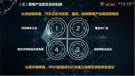 从供给端来看,在智能化和网联化的驱动下,汽车产业生态正在动态、重构,汽车产业链以信息、通讯、互联网等产业链的深度融合,正在形成一个史无前例的全新的产业生态。从需求端来看,制约自动驾驶走向规模化、普及化应用的关键因素之一就是广泛持续的市场接受度,也就是消费生态的建立。