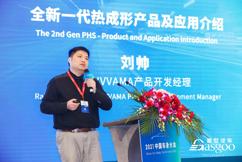 VAMA资深客户技术支持工程师李久茂先生和刘帅经理共同进行了题为“全新一代热成形产品及应用介绍”的演讲。全新一代热成形产品Usibor2000和Ductibor1000,从Usibor1500升级到2000以后强度有500兆帕的提升,我们替代使用的话,大概有10%左右轻量化效果,对于软区材料Ductibor系列,从Ductibor450到500升级到1000,强度有翻倍的提升,替代使用性大概有25%的轻量化效果。