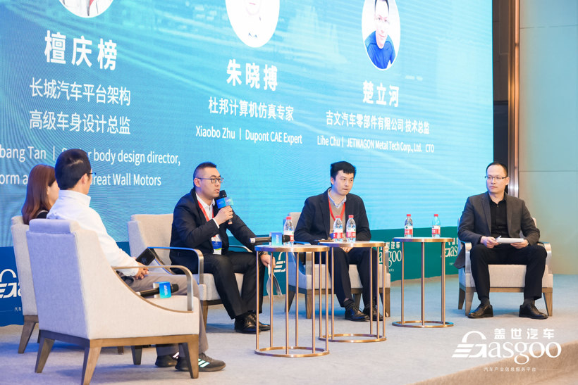 在演讲结束之后,进行的是圆桌讨论环节。圆桌会议的主题是:未来的城市车辆结构和白车身:挑战和潜力。主持嘉宾是来自中国科学院上海光学精密机械研究所杨上陆博士。圆桌嘉宾分别是:一汽集团材料与轻量化研究院高级主任李菁华女士、长城汽车平台架构高级车身设计总监檀庆榜先生、杜邦计算机仿真专家朱晓搏先生、吉文汽车零部件有限公司技术总监楚立河先生。