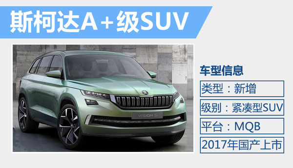 斯柯达全新A+级SUV的国产上市时间有望在2017年上半年。