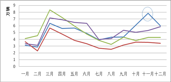 2017年1月1日所有制造、进口、销售和注册登记的轻型汽油车、重型柴油车(客车和公交、环卫、邮政用途),须符合国Ⅴ标准要求。2017年7月1日全国所有制造、进口、销售和注册登记的重型柴油车,须符合国Ⅴ标准要求。国Ⅴ排放标准的卡车,相对于国Ⅳ卡车贵5000元左右,会刺激少部分购车需求在上半年提前释放,但影响不大。综合而言,在上半年形成集中购车高峰,下半年市场淡季可能比较明显,影响正常的月度需求走势。