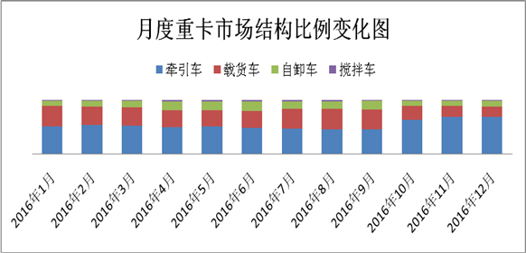 进入2016年以来,重卡市场需求结构发生较大变化,月度市场需求结构如下表: