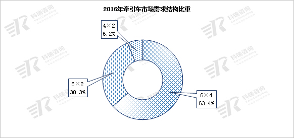 2016年四季度第,重卡需求结构受GB1589及治超治限政策影响明显,6×4牵引车极大的带动了牵引车市场的比例大幅提高。