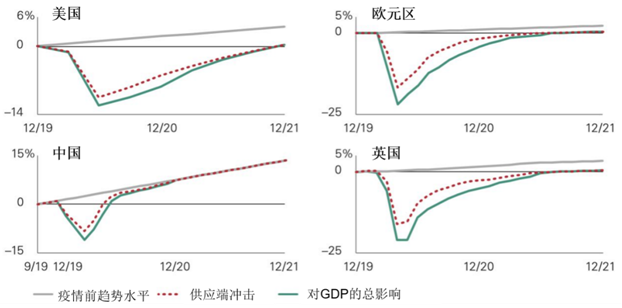 注:以上图表显示了对各经济体实际GDP(以本地货币标价)影响的预期。对GDP的总影响用GDP水平百分比变化表示。资料来源:先锋集团,截至2020年6月30日。