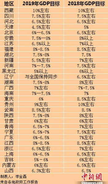 不过,也有省份设定的2019年GDP目标与去年持平。
