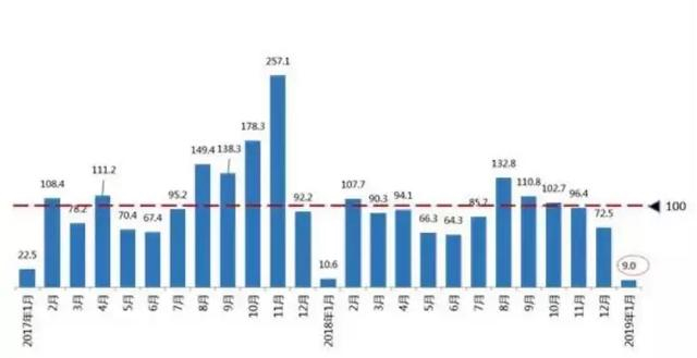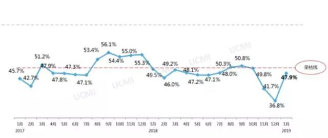 经销商库存量虽然有所下降,但始终位于荣枯线以上,依然不能保持乐观。根据中国汽车流通协会发布的“汽车消费指数”,从汽车消费指数的分指数来看,2019年1月的需求分指数为9.0,消费者购车需求创新低。
