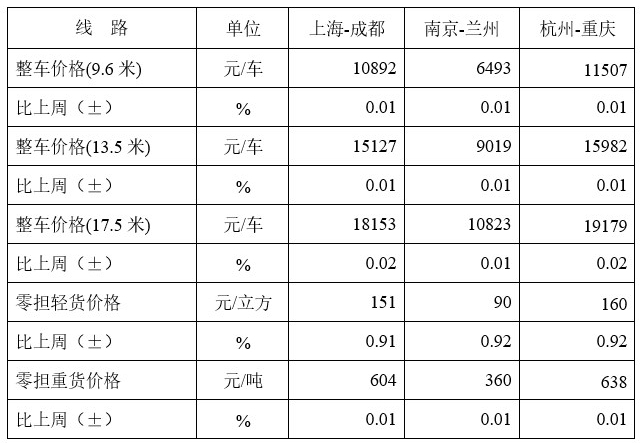 表1 2019年1月中国公路物流运价指数表