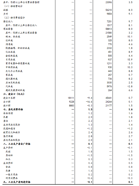(2)规模以上工业增加值及其分类项目增长速度按可比价计算,为实际增长速度;其他指标除特殊说明外,均按现价计算,为名义增长速度。