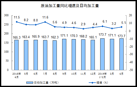 2019年4月份,规模以上工业增加值同比实际增长5.4